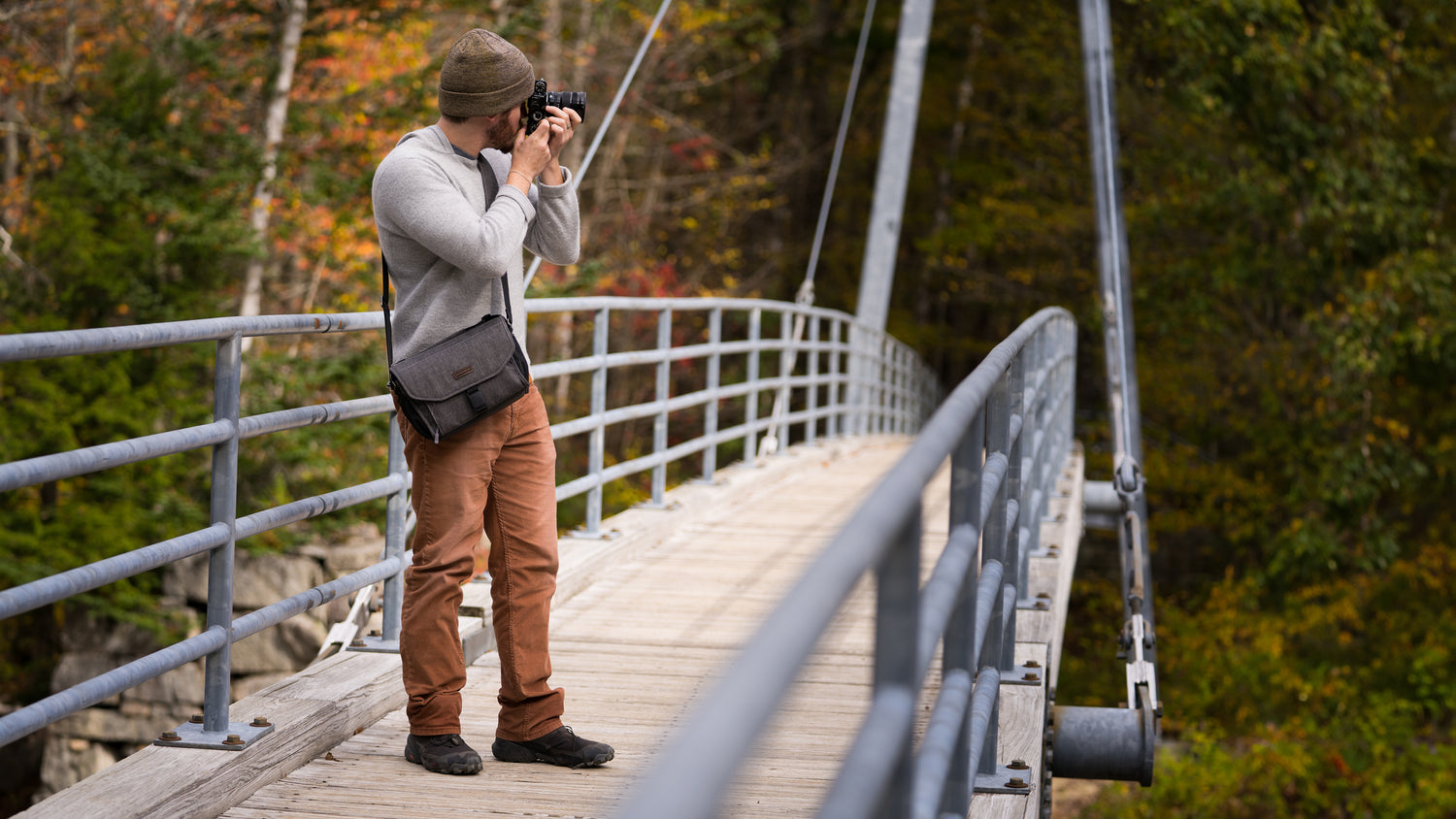 The Blue Ridge series blends the lines of style and functionality quite well. Lots of storage space for its size, and a nifty magnetic latch for one hand to quickly open for access. Alternatively, unzip the top of the bag for direct access to the main camera compartment.