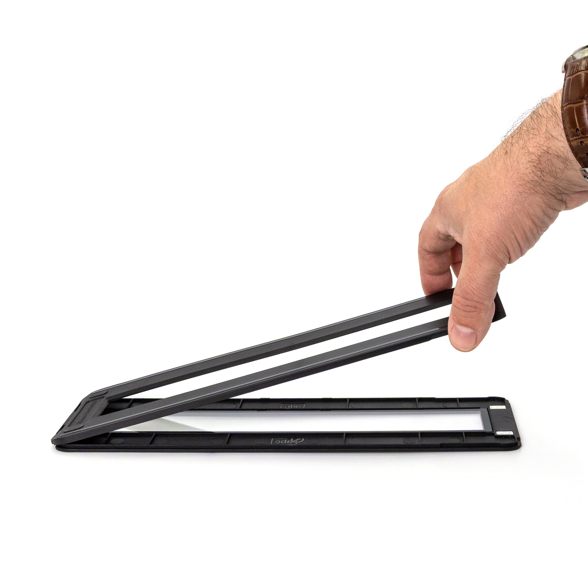 Fast and easy. The sliding rail system moves the film holder and LED backlight to the perfect distance from your lens quickly and precisely. Etched scale markings let you repeat setups in seconds. And instead of waiting minutes for a scan, your camera captures each frame in a single click. Slide, shoot, repeat, and your roll is scanned in no time.