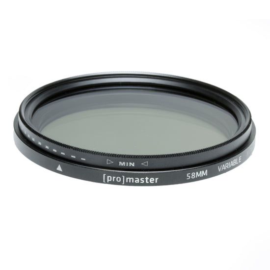 The ProMaster Variable Neutral Density filter allows total lighting control in virtually any environment. Completely variable from a factor of ND3 to ND400. This filter is available in sizes from 37mm - 82mm. Click on a filter size below to view its product page: