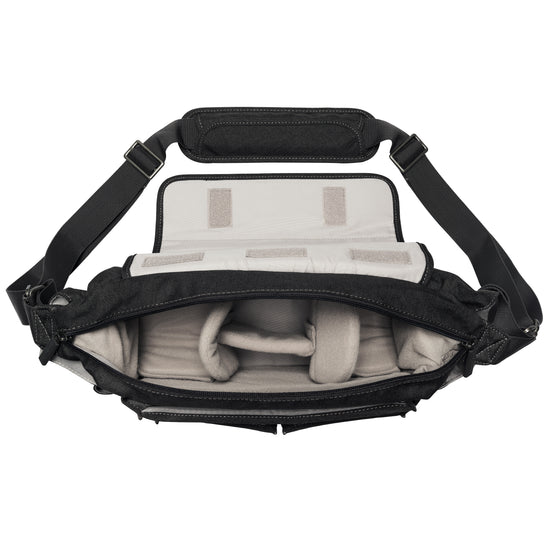 The PROMASTER CITYSCAPE 130 COURIER BAG is ideal for the photographer on the go. With room for a camera, accessories, tablet, water bottle, and more. This bag can multi task like you do! Outside pockets offer quick access and help with lens changes. For full bag access, fold the main flap along its seam and tuck it into the back pocket of the bag.