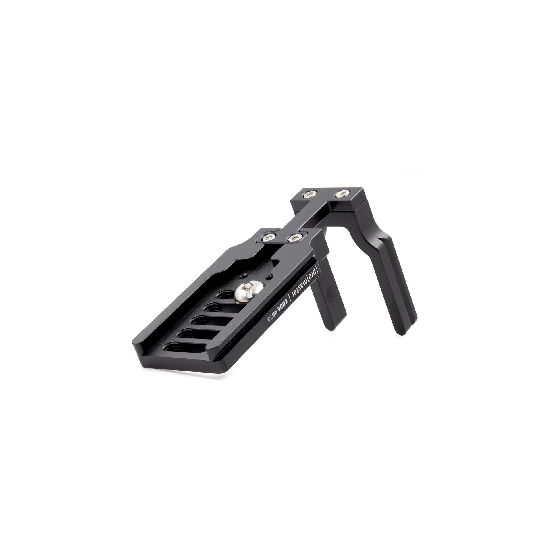 ProMaster’s unique, three-piece design allows the side plate of the Small Complete-L Bracket to be positioned in one of two ways. The normal position places the side plate very close to the left-hand side of the camera. The extended position places the side plate about ¾” further away from the left-hand side of the camera for extra spacing and better access to the camera’s connection ports. The side plate can also be completely removed from the baseplate when needed.