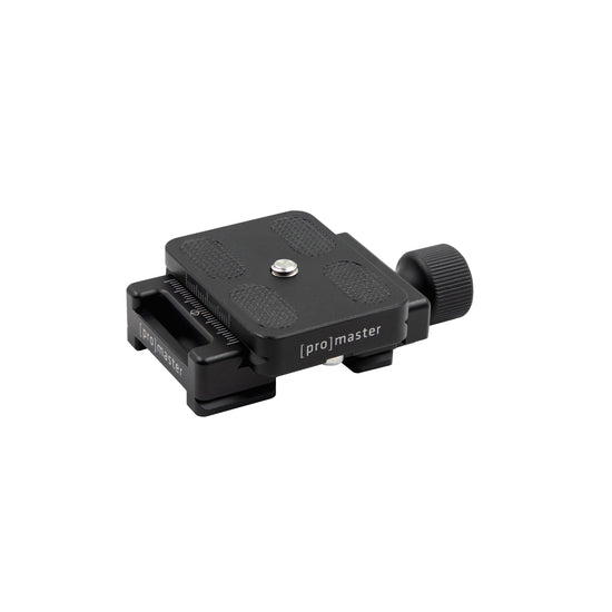 The ProMaster Dovetail QR Clamp Kit is a great way of adding an Arca-type quick release to a tripod, head, grip item, or other piece of equipment. It uses a 3/8"-16 threaded port and includes a 1/4"- 20 adapter. The clamp body also has three strap slots, so it can be used as a quick release system for a shoulder strap.
