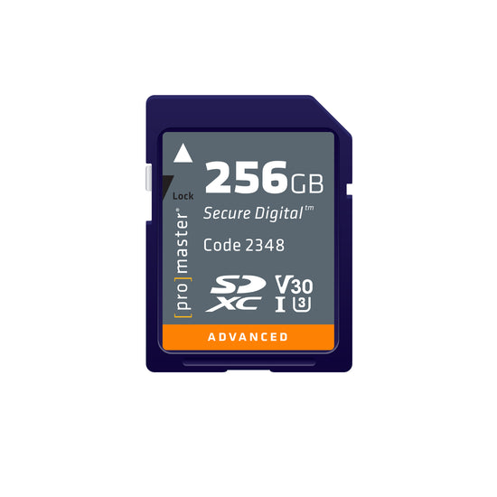 This ProMaster 256GB Advanced SDXC memory card offers excellent performance at an affordable price. With U3 design and V30 speeds, Advanced Memory Cards enable your camera to perform well in all modes including high-resolution video capture.